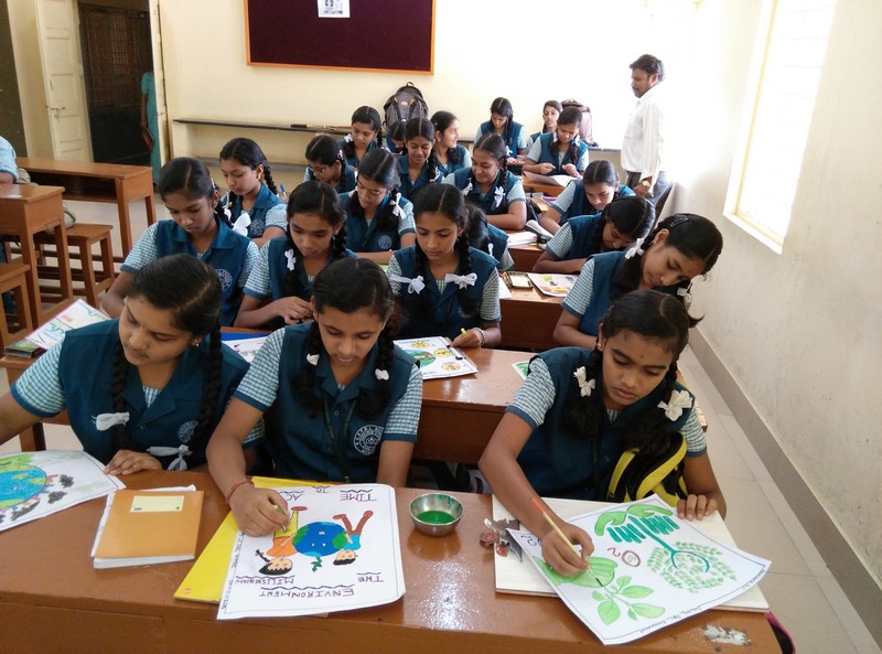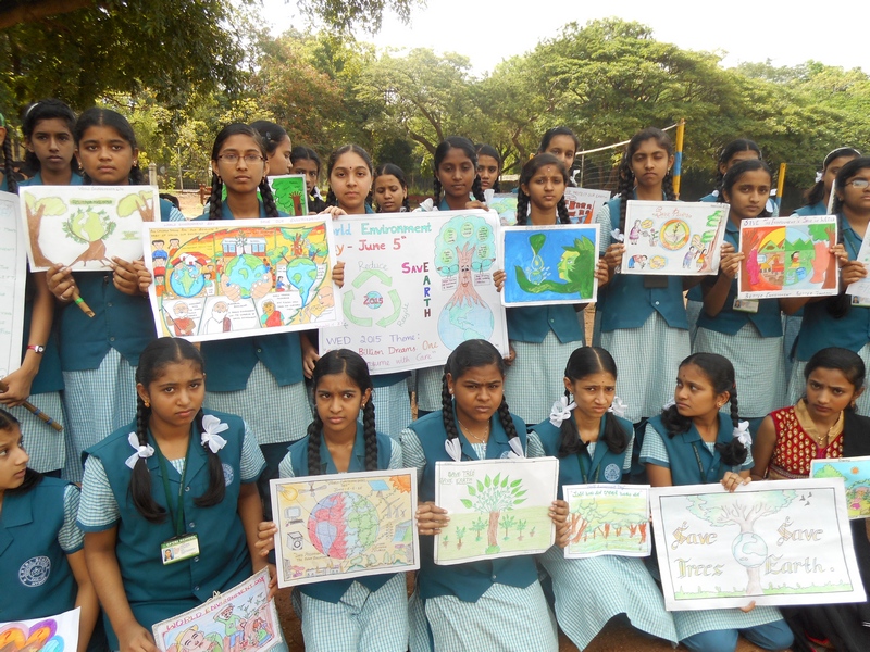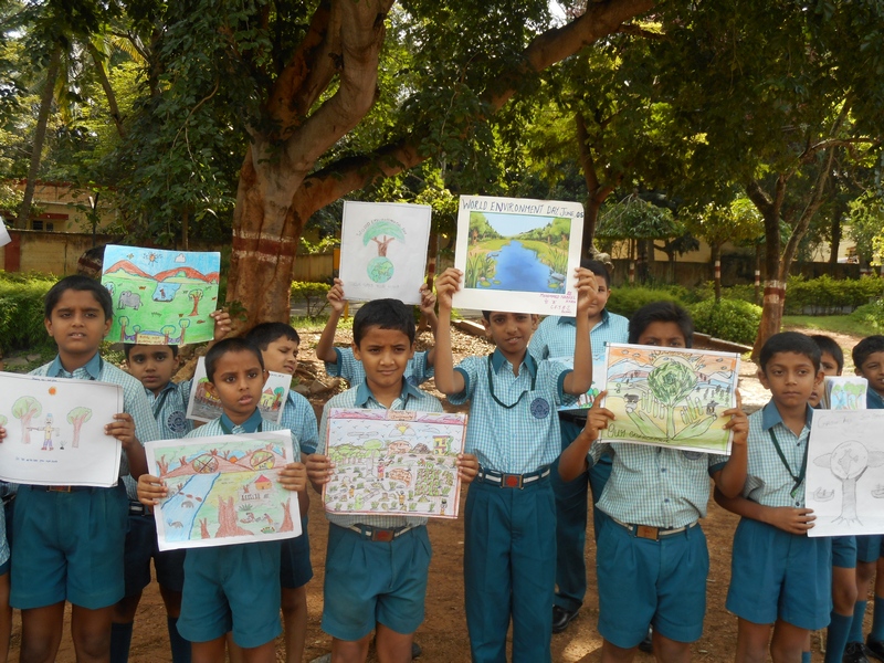 Environment Day was celbrated in the school on June 5, 2015. Many chikdren from classes I to IX had drawn posters to mark the importance of the day and displyed at the School assembly. Before this Kumari Sharanya of IX 'B' gave a brief information about the World Environment day and Master Poojith from IX 'B' highlighted the points to protect our environment. To commemorate the the event Master Keerthan of X 'B' planted a mango sapling in the school ground. A drawing programme was also oragnised in the school for all students on June 6th 2015 in which the students took part enthusiastically and showed their talents.