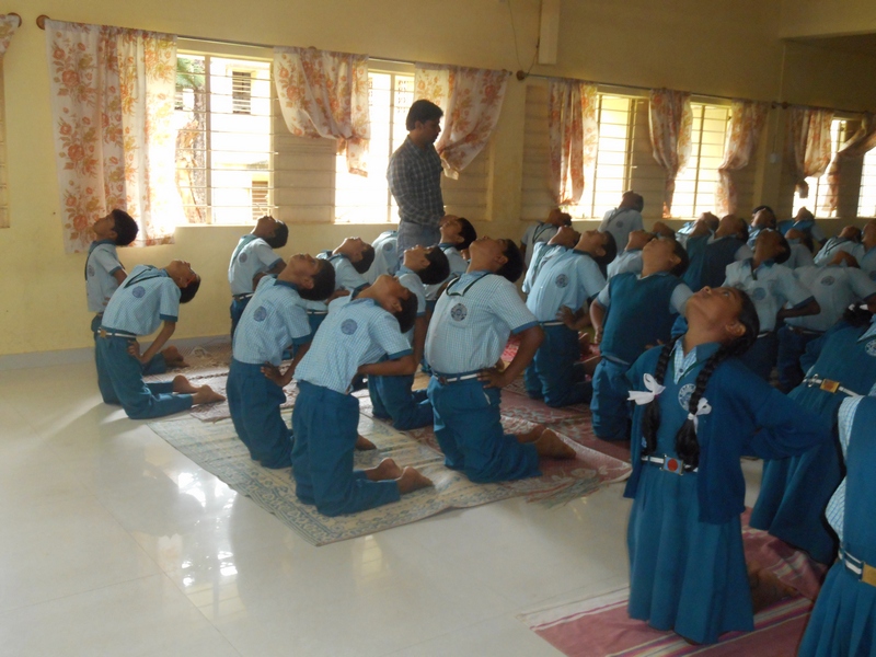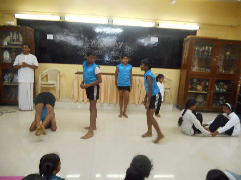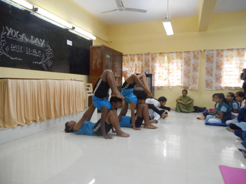 International Yoga Day was celebrated in the school on Sunday, 21 June 2015 from 7.00 am to 7.45 am. Sri Ravanikar H N, Yoga Master, Agrahara, Mysuru was the Guest of Honour. He along with six of his students - one student is also the student of UKG class, CFTRI School-demonstrated various Asanas, Pranayama and Meditation. Sri Ravanikar H N, Yoga Master, stressed on the importance of yoga in his introductory speech and talked about the benefits of yoga. Smt Saraswathi BAi, Principal, presided over the function. The programme was organized and managed by Sri V G Bhat, Sanskrit Master. All the staff members took part in the programme. A yoga training programme was organised for students on 23 June 2015 by the members of "Art of living". Mrs Naganandini and Mrs Pratibha from Art of living group gave training invarious Asanas, Pranayama and Meditation with demonstration. Calss VII students took part in it.